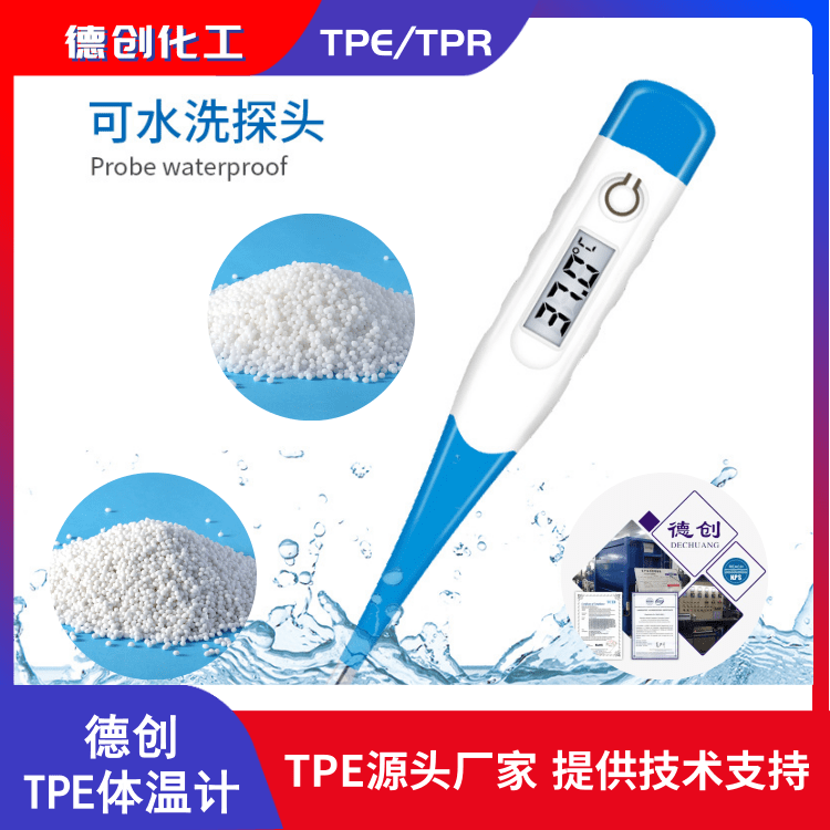 德創(chuàng)TPE包膠電子體溫計專用料無毒無味,已通過相關(guān)醫(yī)用級檢測,符合ROHS、REACH等環(huán)保要求,觸感舒適,對皮膚無刺激不致敏,貼身使用更安全;產(chǎn)品加工性能優(yōu),可塑性強,著色率高,粘合牢固,亦可提升產(chǎn)品美觀度;產(chǎn)品耐溫,耐候性佳,防水耐磨耐汗酸,可有效保護產(chǎn)品內(nèi)部機件。除此之外,TPE材料比重輕,低能耗,可回收利用,可有效節(jié)約生產(chǎn)成本。