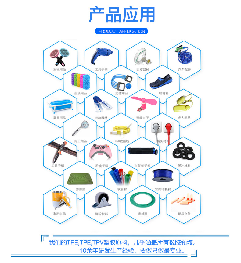 熱塑性彈性體具有熱塑性塑料的加工性能和硫化橡膠的物理性能。它結(jié)合了塑料和橡膠的優(yōu)點。熱塑性彈性體占據(jù)原始它屬于硫化橡膠領(lǐng)域。近十年來,電子電器,通訊和汽車工業(yè)的快速發(fā)展推動了熱塑性彈性體的快速發(fā)展。 TPE是一種高彈性,高強度,高背的橡膠。彈性和注塑成型,環(huán)保,無毒,安全,具有廣泛的硬度,優(yōu)異的著色性,柔軟的觸感,耐候性,抗疲勞性和耐溫性,優(yōu)異的加工性能,無需硫化,并且可以被回收。降低成本,可雙注塑成型,涂有PP,PE,PC,PS,ABS等基材,也可單獨成型。